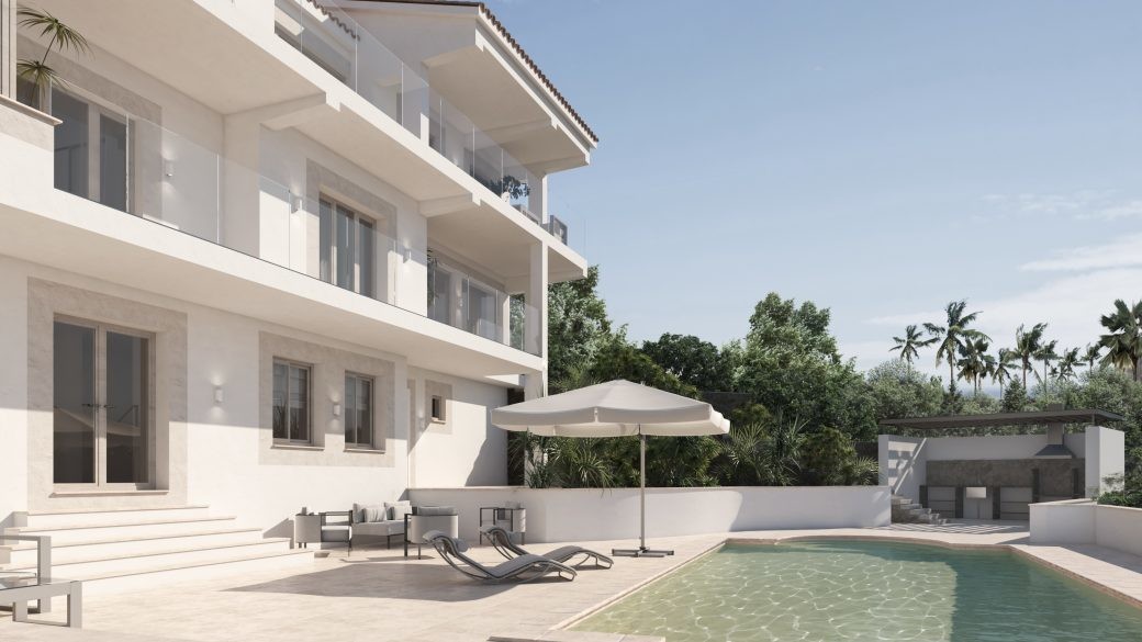 Die großzügige Villa bietet lichtdurchflutete Wohnräume, eine hochwertige Ausstattung und weitläufige Terrassen mit Panoramaausblick. Der gepflegte Garten, der Poolbereich und die unmittelbare Nähe zu Palma und mehreren Golfplätzen machen dieses Anwesen zur perfekten Residenz für anspruchsvolle Genießer.
